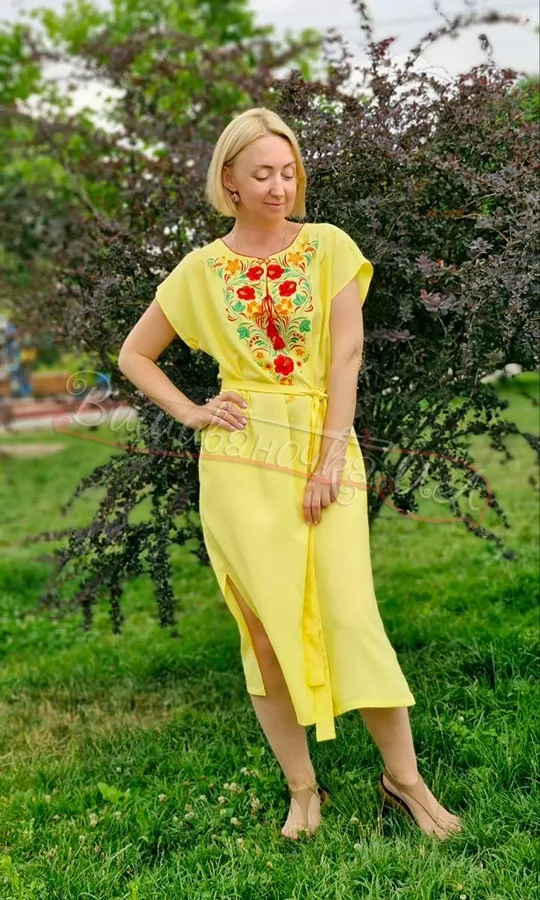Жовта яскрава сукня з вишивкою 7534