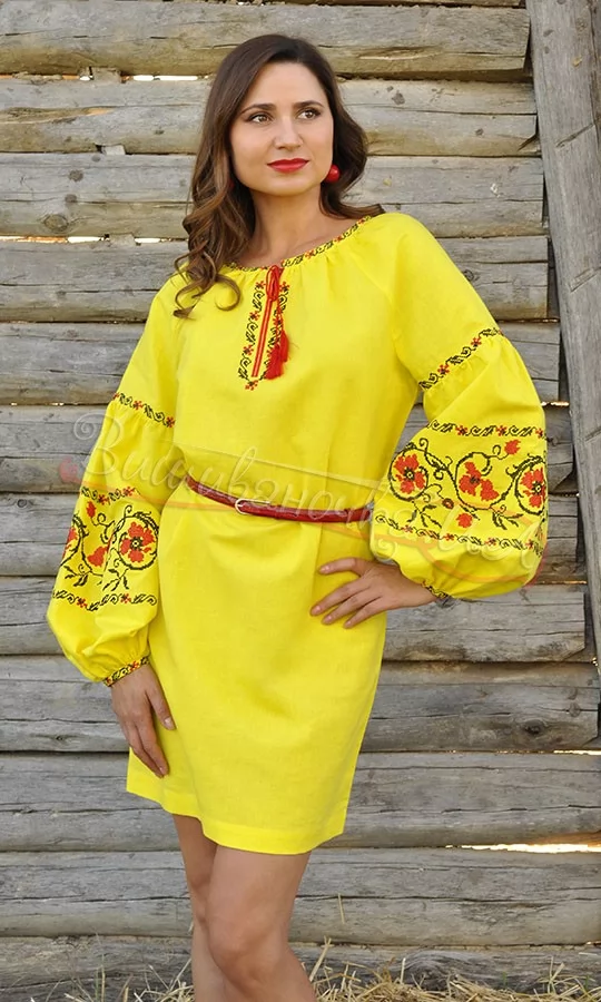 Жовте лляне плаття П242
