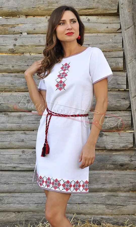 Коротке біле вишите плаття П21