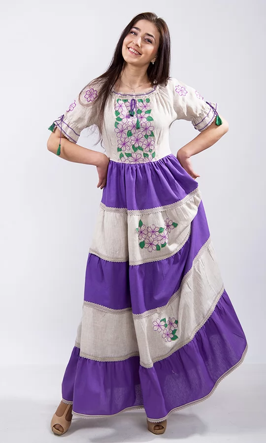 Квітчасте плаття з фіолетовими вставками 7214 - фото vishivano4ka.com.ua