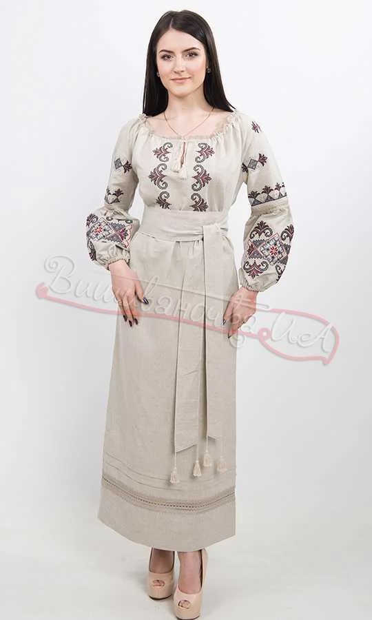 Пропонуємо ексклюзивну етно-сукнню, оздоблену вишуканою машинною вишивкою. Модель на лляній основі декорована геометричним орнаментом та натуральним мереживом на грудях та рукавах. Розріз ззаду та стильний поясок підкреслять Ваш шарм. Модель виготовляється за стандартними розмірами, або за індивідуальними замірами клієнта з 20 % завдатком чи 100 % передоплатою.