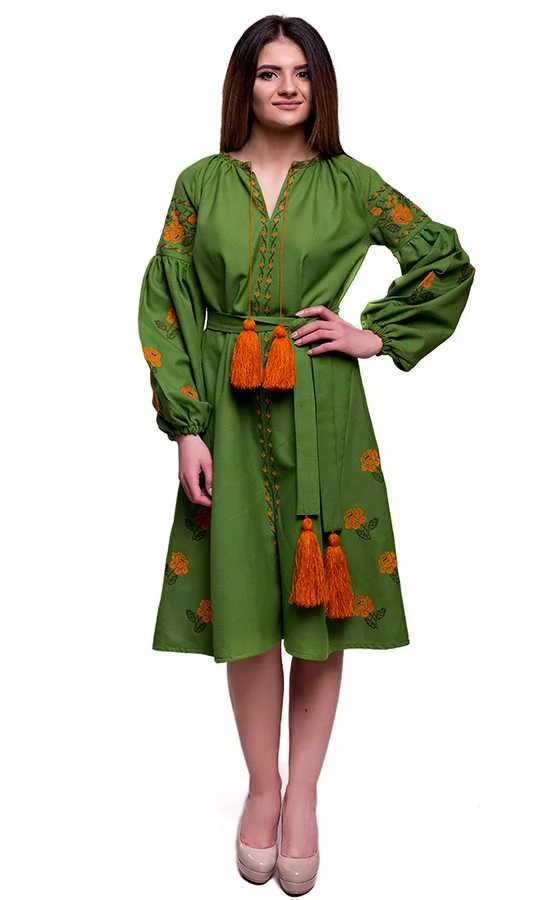 Оригінальна вишита сукня зеленого кольору SL09