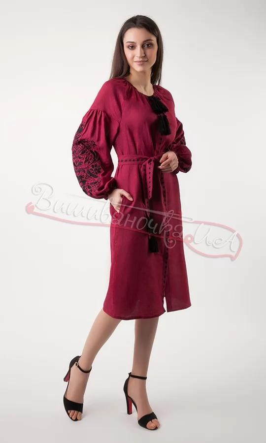 Плаття з вишивкою дерева життя з льону 3336