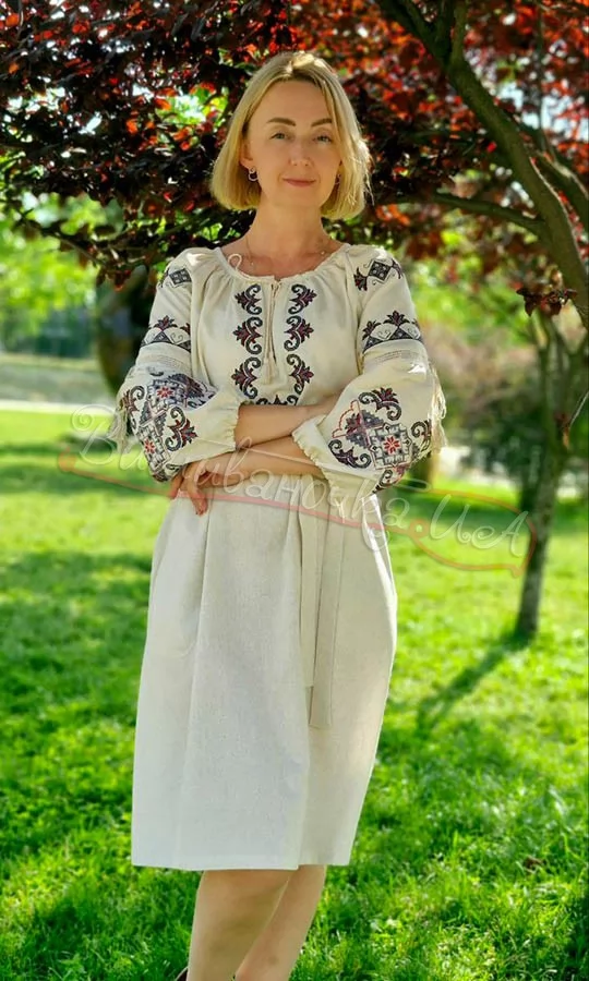 Сукня з вишивкою від дизайн-студії "Чічка". Тканина - льон-бавовна. Модель виготовляється за стандартними розмірами, або за індивідуальними замірами клієнта з 20 % завдатком чи 100 % передоплатою.