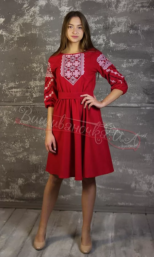 Сукня вишита червоного кольору 414-9.3