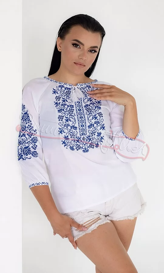 Жіноча блуза з синьою вишивкою 517-3с