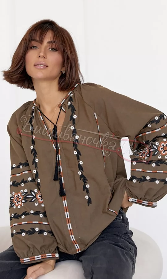 Жіноча вишита блуза на завязках 5539
