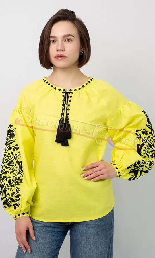 Жовта жіноча блуза з вишивкою 1041