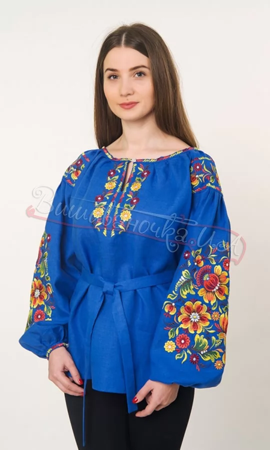 Синя вишиванка з льону 4512