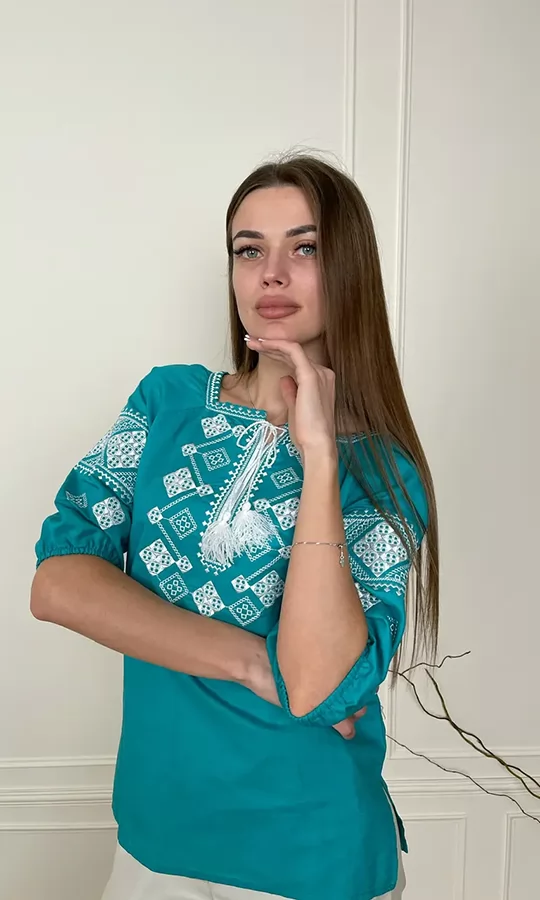 Вишиванка жіноча на мятному льоні 1014
